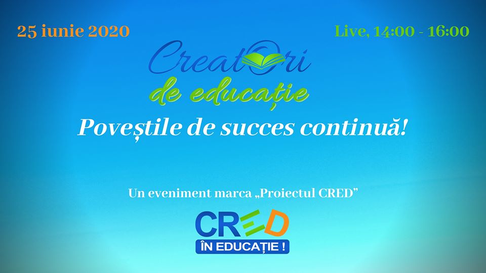 Evenimentul online „Creatori de Educație: Poveștile de succes continuă!” s-a desfășurat joi, 25 iunie 2020, fiind urmărit live pe pagina Facebook „Proiectul CRED” de peste 300 de persoane.