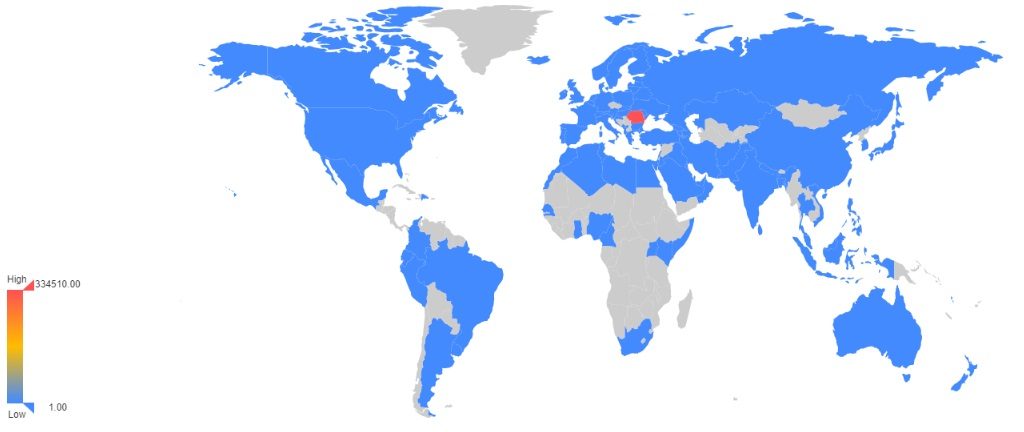 Site-ul creatorideeducatie.ro a fost accesat din întreaga lume, mai exact din țările marcate cu culoarea albastră