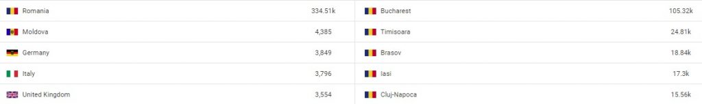 Topul țărilor și al orașelor, în funcție de numărul total al accesărilor platformei creatorideeducatie.ro